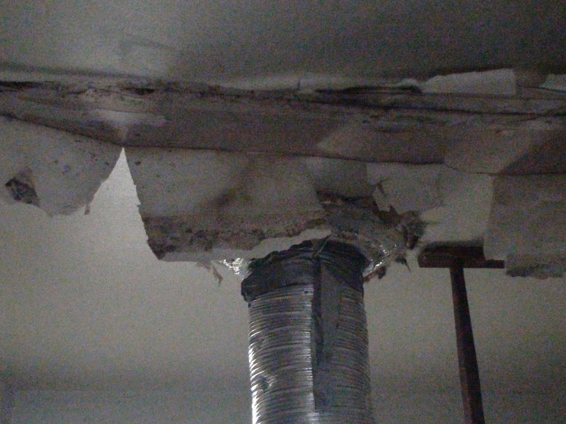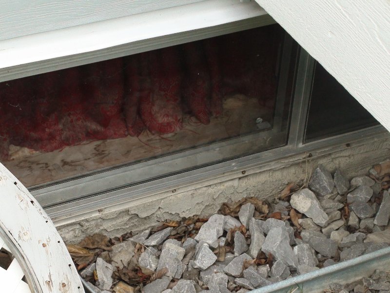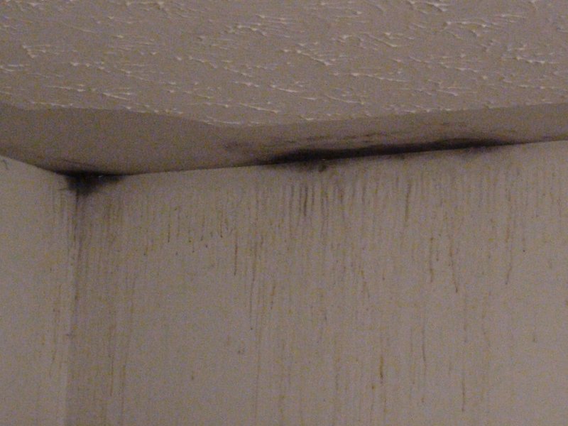 Sweating or staining down the side of house from excess moisture.